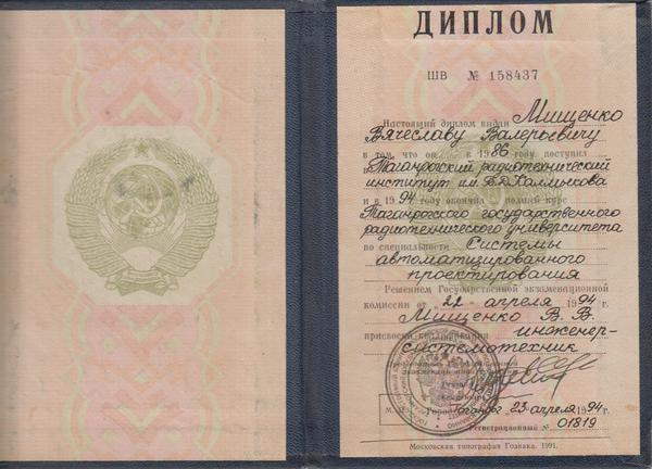 По окончанию успешного обучения на дневном отделении получил диплом государственного образца.