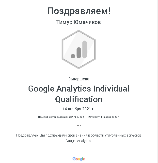 + Имею сертификаты специалиста Яндекс и Google.