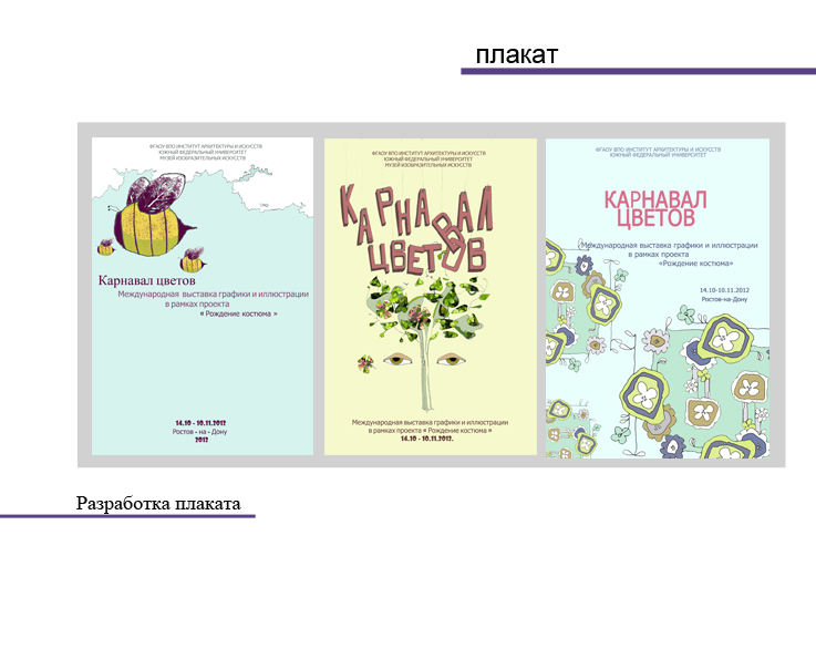 Участие в творческих проектах, фестивалях и конкурсах: Участник фестиваля «КреММ" номинация ?коллекция? и «свой стиль»; Участник творческой выставки «Молодые художники Дона–2009»; Участник фестиваля ?Подиум D-aarm 2010?; Участие в V международной выставке в рамках проекта "Карнавал цветов». Участие в научно-практических конференциях. Имею дипломы и грамоты участника.